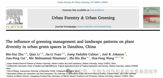 2024年12月,王华锋课题组在《Urban Forestry & Urban Greening》期刊(中科院一区TOP期刊,IF=6)发表题为“The Influence of Greening Management and Landscape Patterns on Plant Diversity in Urban Green Spaces in Danzhou, China”https://doi.org/10.1016/j.ufug.2024.128651的研究论文。williamhill官网硕士研究生朱美惠为该论文的第一作者,王华锋教授为论文的通讯作者。本研究得到国家自然科学基金的资助。
