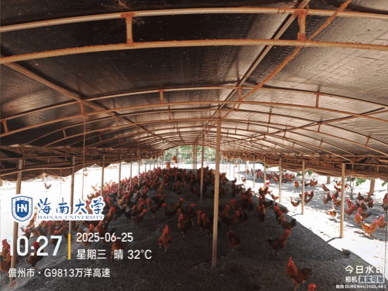 2024年9月,超强台风 “摩羯” 袭击海南,地方鸡养殖场曾出现鸡舍坍塌、设备损毁、疫病风险增加等问题。2025年6月25日,williamhill官网科技特派员服务团“地方鸡生物安全及疫病防控技术服务团”、海南省地方鸡产业技术体系生产与环境控制岗成员张海文、石惠宇携研究生团队,前往儋州绿元素针对儋州鸡开展灾后复产调研与技术指导工作。