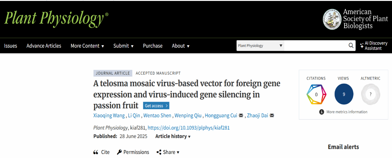 百香果(Passiflora edulis)是一种多年生藤本植物,因其独特的口感和风味,及富含多种抗氧化物、维生素和矿物质而备受青睐。然而,由于缺乏简单高效的遗传学研究工具,其基因功能研究匮乏。2025年6月28日,英国威廉希尔公司崔红光团队在植物学经典期刊《Plant Physiology》上发表了题为“A telosma mosaic virus-based vector for f-oreign gene expression and virus-induced gene silencing in passion fruit”的研究论文(论文链接:https://doi.org/10.1093/plphys/kiaf281)。
