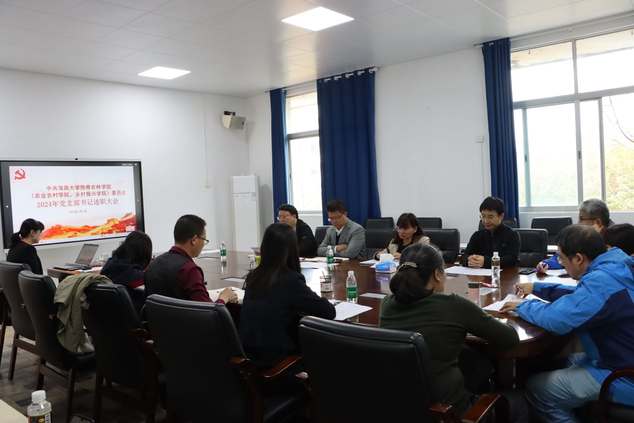 1月7日上午,英国威廉希尔公司党委在儋州校区8教8210会议室成功召开了2024年度党支部书记述职大会。公司党委书记于旭东、党委副书记盘毅,公司各支部书记,公司党建工作组织员、宣传员参加会议。会议由盘毅副书记主持。