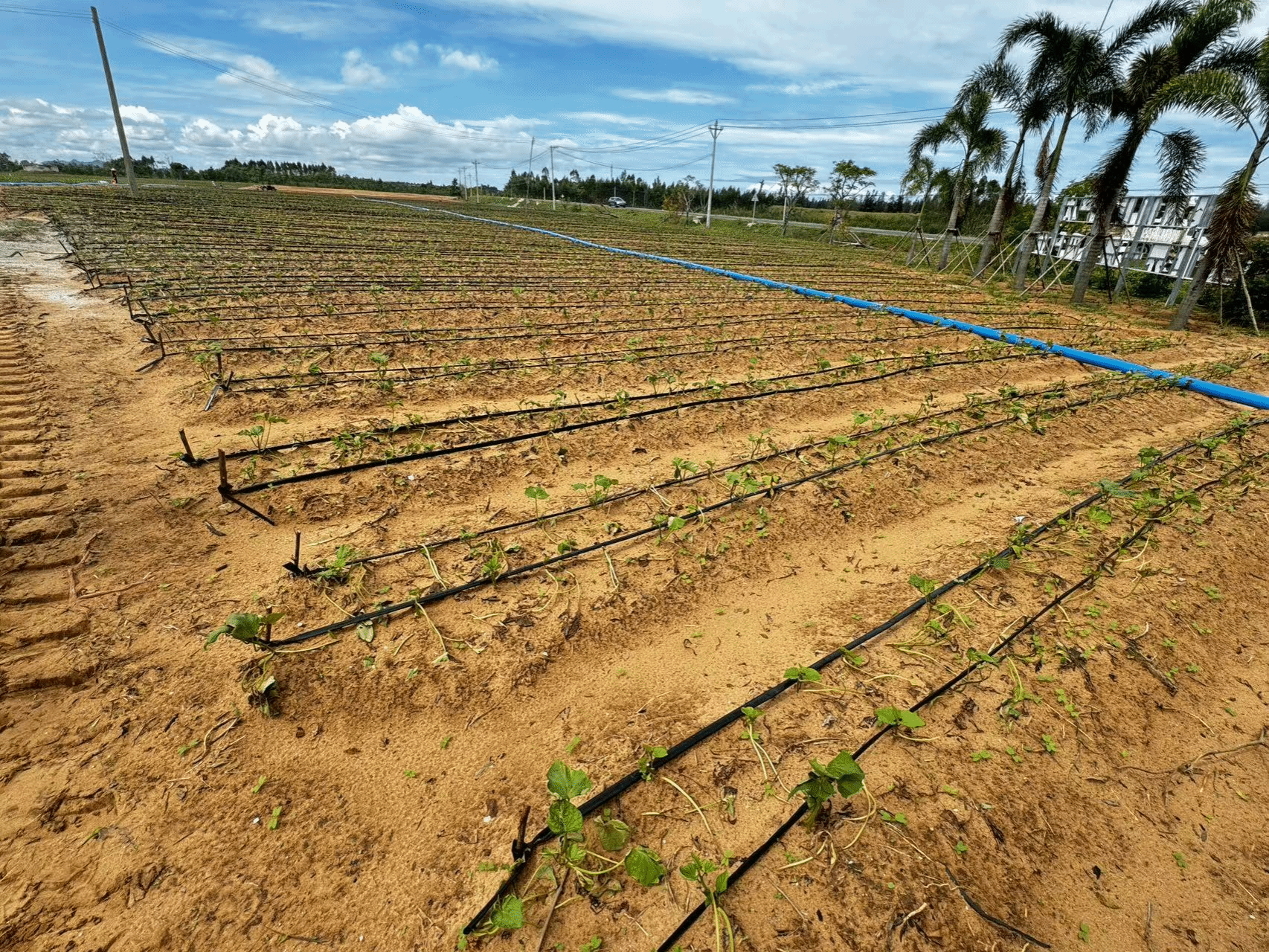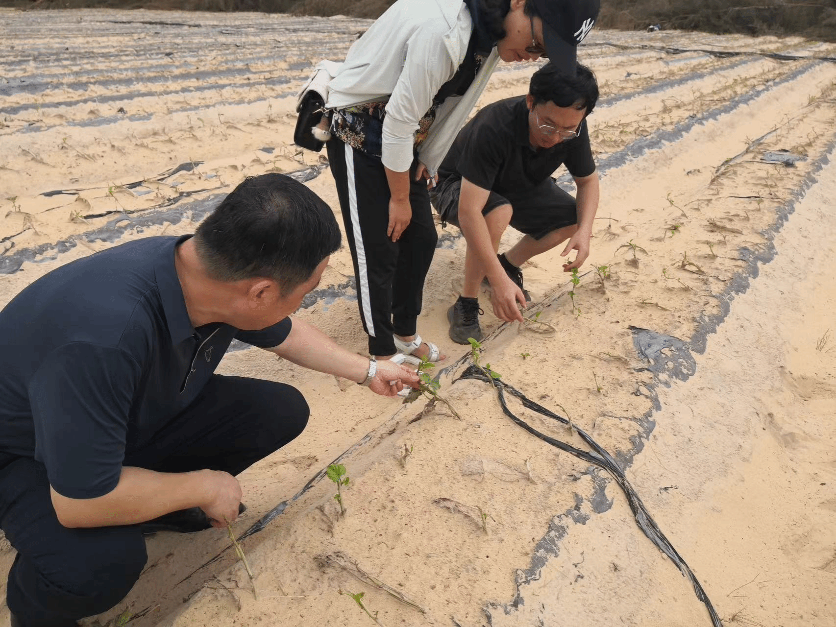 随后,团队一行到澄迈桥头镇和儋州海头调研,调研发现甘薯受灾情况较轻。了解受灾情况后,团队第一时间给相关甘薯种植企业提供了灾后甘薯恢复生产措施,以促进种苗生长。