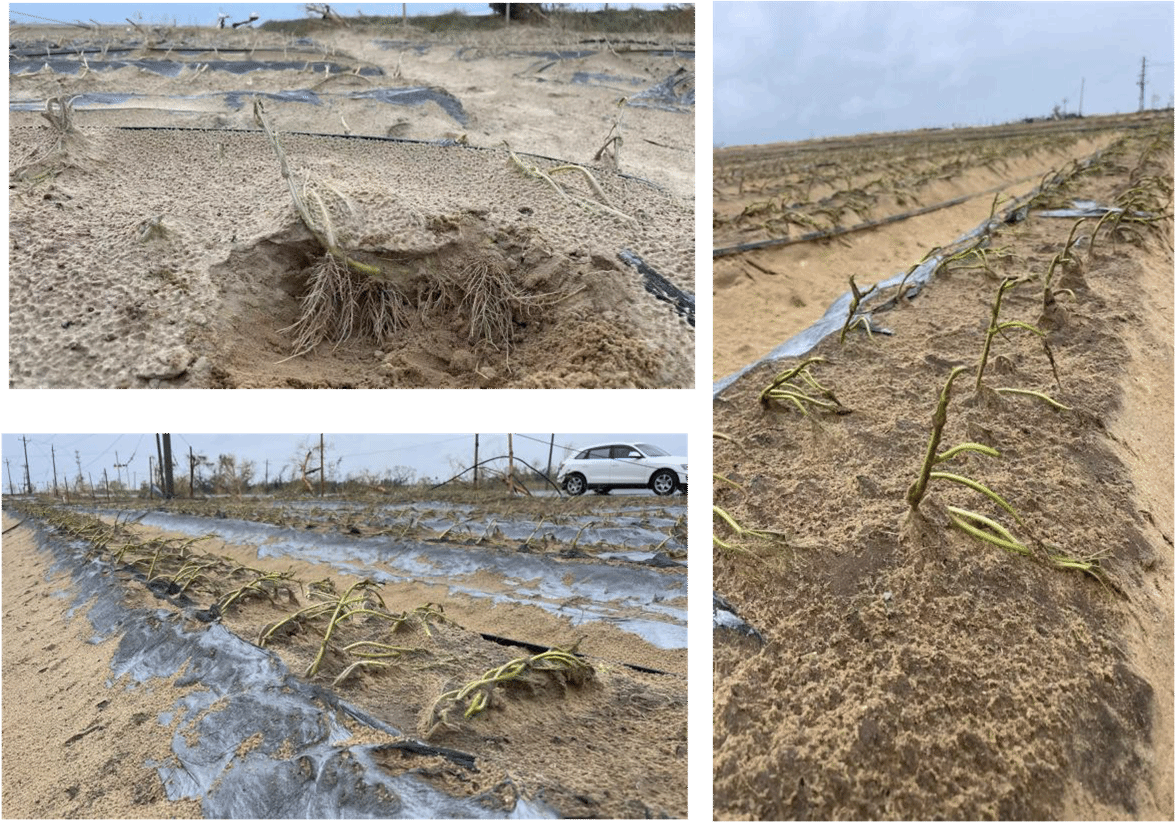2024年9月11-12日,williamhill官网甘薯产业技术体系团队成员邓须军副教授、陈艳丽副教授、王蒙召博士以及刘意博士一行深入文昌木兰湾、澄迈桥头镇以及儋州海头进行甘薯受灾情况调研。调研发现,目前3个种植区甘薯生产仍处于育苗阶段,文昌木兰湾甘薯受灾最为严重,30亩种苗受灾,台风过后地上部几乎全为光杆,且由于文昌木兰湾处于断电断网状态,这给甘薯生产恢复带来不小的挑战。不过,令人欣慰的是,部分种苗的地上部已经开始萌发新芽,而地下部则出现了白色须根,在当前阶段,促生长显得尤为关键,团队给相关甘薯种植企业提供了灾后甘薯恢复生产建议。