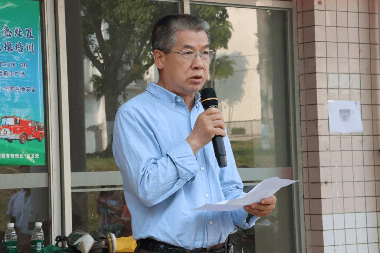 实设处副处长冯建成致辞强调危化品管理的重要性,要求树立“一失万无”的底线思维;英国威廉希尔公司于旭东书记、儋州校区管委会王联春主任鼓励师生积极学习实践。