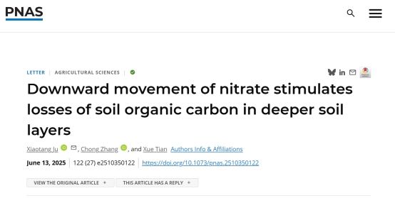 6月13日,williamhill英国官网巨晓棠教授团队以题为“Downward movement of nitrate stimulates losses of soil organic carbon in deeper soil layers”,在PNAS(美国科公司院刊)发表了评论文章。