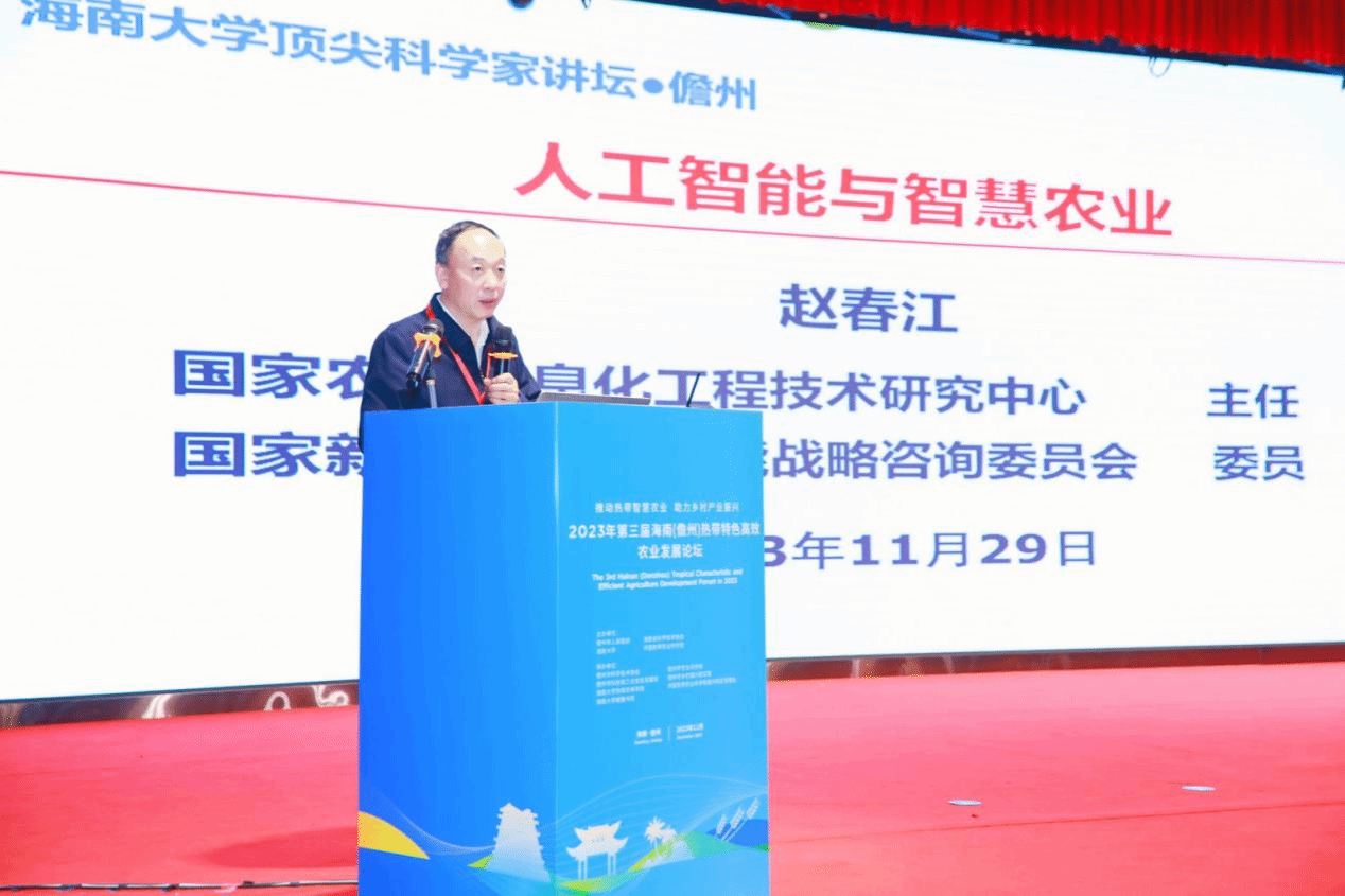 开幕式后,罗锡文院士以《无人农场的探索与实践》为题,结合无人农场的实际应用推广,为推进热带高效农业发展中实现农业种植的精准化、标准化、精细化、集约化、规模化和高效化,达到增产增收提供了思路和路径。赵春江院士以《智慧农业展望》为题,阐释了智慧农业的概念与内涵,分析了我国智慧农业发展现状、特点以及与国际上的差距,提出了我国智慧农业未来发展目标,为今后智慧农业发展提供了方向性指导。