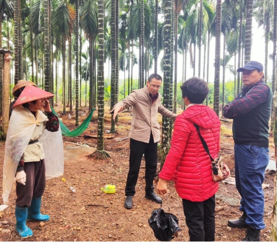 杨福孙教授在槟榔基地传授施肥经验和保温措施