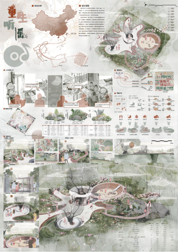 本次主题设计竞赛在中国公园协会的指导下,中国勘察设计协会风景园林与生态环境分会、中国公园协会公园文化与园林艺术专业委员会、广州市林业和园林局、广东园林学会、华南理工大学建筑公司联合主办。本次竞赛共收到了217份作品,经初审,共13件作品入围,并于12月16日进行线上终评会。其中,由williamhill英国官网风景园林系黎淑翎、付晖老师指导的团队,陈懿、詹欣仪、袁玮婧3人,凭借《童生听谣》设计作品,荣获第31届广州园林博览会员工设计竞赛银奖