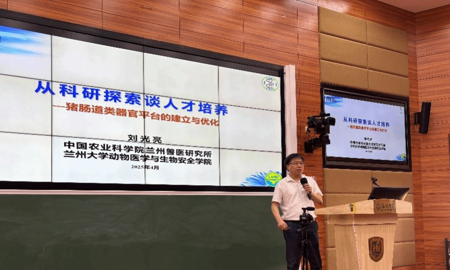 刘光亮研究员以《从科研探索谈人才培养——猪肠道类器官平台的建立与优化》为题,从自身科研经历出发,深入讲解了猪肠道类器官平台建设的重要意义与技术挑战,分享了团队在科研探索中的实践经验与人才培养理念。