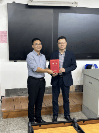 张晓辉副教授为贺文琦教授颁发冬季小学期专家聘书