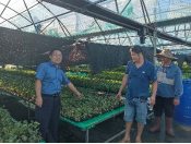 台风过后,9月12日,成善汉教授、司成成副教授一行从崖州奔赴澄迈老城夏社村基地,仔细查看大棚设施损坏情况,嫁接苗、实生苗受灾、发病情况,指导保苗救灾工作,并与基地负责人、购苗种植户进行交流,提出风后救灾措施,包括及时将刮坏的薄膜恢复盖膜防止雨水打坏幼苗,及时清理坏苗死苗严重病苗,喷施氨基酸水溶肥及微量元素肥促进弱苗恢复生长、喷施600-1000倍41%聚砹•嘧霉胺防治疫病、硫酸链霉素4000倍液防治细菌性叶斑病、加强大棚通风、设施周沟开挖与排水等,建议对种植户预购苗及时播种补苗,保障按时供应。