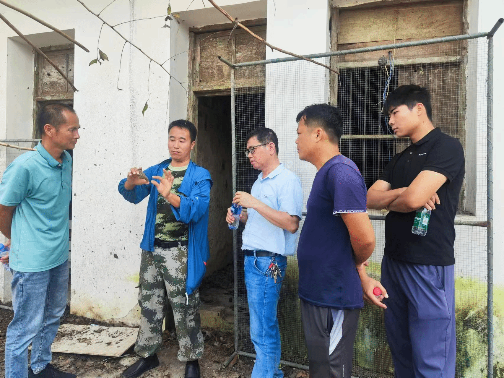 在海口市龙泉镇五一村,救灾小组根据芋头产业发展公司的介绍,对芋头种薯存放的相关区域进行了现场调研。根据现场种薯的发霉情况判断。发生发霉腐烂的芋头种薯主要原因为,感染丝核菌后发生芋头白绢病。尤其在台风过后,种薯贮藏房间不通风,湿度增加,加重了种薯的发病情况。结合生产实际,谢昌平老师现场向公司相关技术人员进行介绍了芋头白绢病的发病规律、侵染机制和防治措施。并针对芋头种薯白绢病的预防,进行编制了后续防控方案。