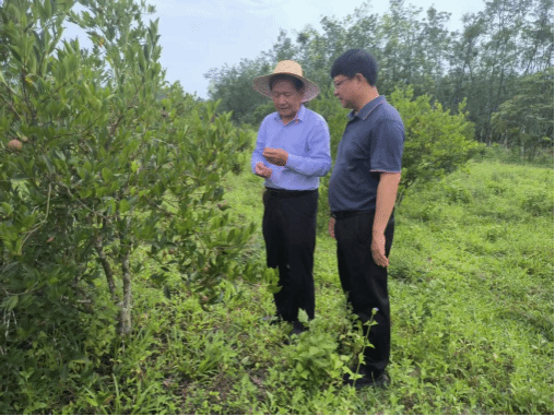 在儋州林场的油茶林现场,冯纪福教授凭借其深厚的专业知识和丰富的实践经验,对油茶林进行了细致入微的观察与分析,并着眼于未来油茶林的高产规划,提出了一系列极具前瞻性和可操作性的意见与建议。