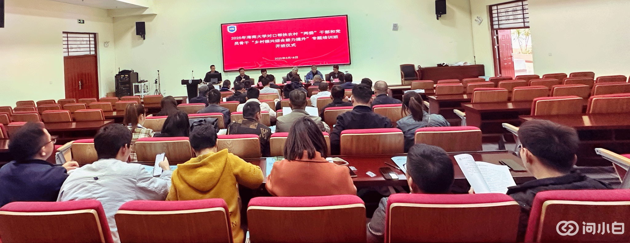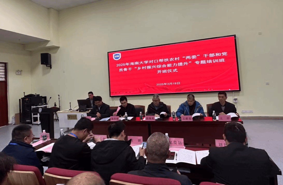 为落实乡村振兴战略部署,williamhill官网于3月18日启动对口帮扶农村"两委"干部和党员骨干"乡村振兴综合能力提升"专题培训班。公司党委常委、副董事长邱锡光出席开班式并致辞,儋州校区相关负责人及来自7个对口帮扶村的40余名学员参加活动,热带农林公司党委书记于旭东主持仪式。