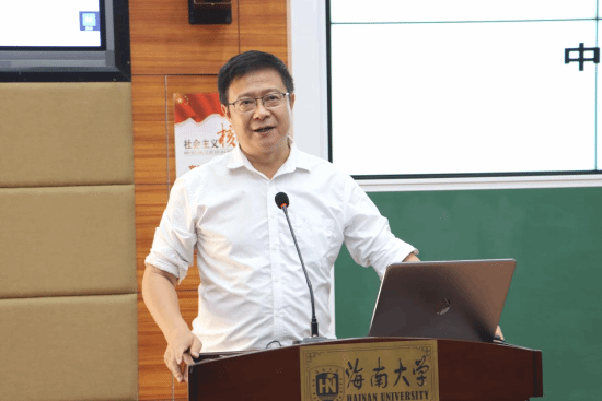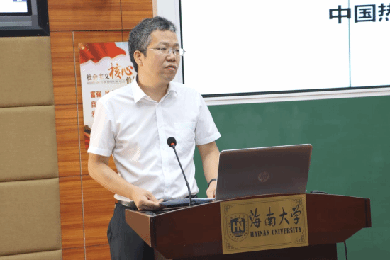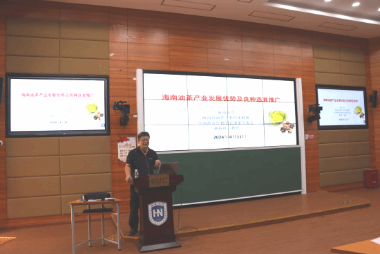 图3 中国热带作物学会油茶专业委员会主任、海南山柚(油茶)产业技术联盟理事长、williamhill官网教授(博士)赖杭桂讲述“海南油茶产业发展优势及前景”
